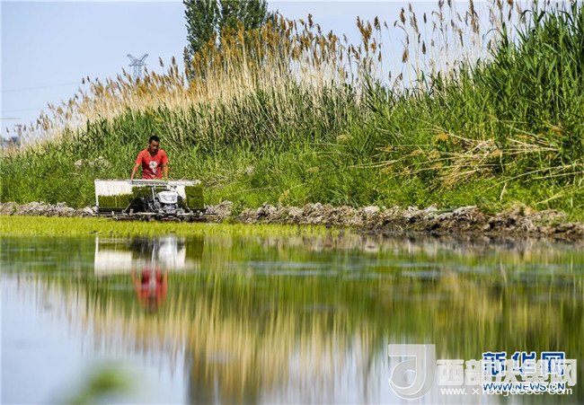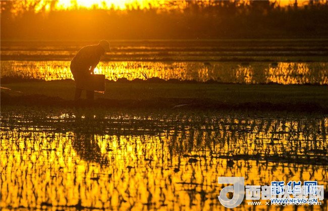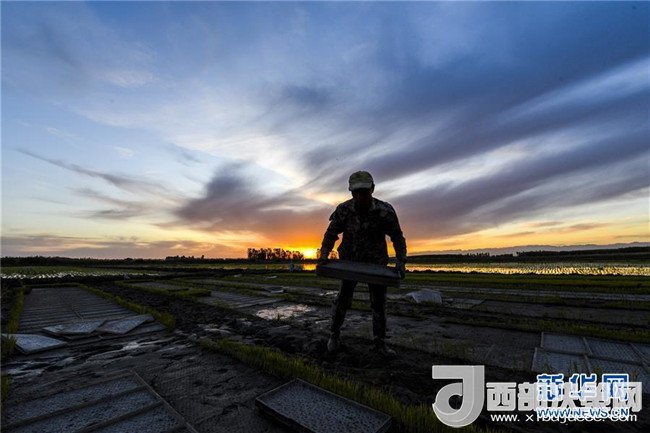 夕陽(yáng)西下,村民在新疆察布查爾錫伯自治縣種羊場(chǎng)托海依村的一處農(nóng)田里勞動(dòng)(5月21日攝)。近日,隨著氣溫漸高,地處新疆伊犁河谷的察布查爾錫伯自治縣迎來(lái)插秧高峰期,田間地頭一派繁忙景象。塊塊稻田水滿如鏡,田間防護(hù)林枝繁葉茂,遠(yuǎn)處雪山依稀可見(jiàn),如一幅在大地上鋪展開(kāi)的生態(tài)畫(huà)卷。新華社記者胡虎虎攝