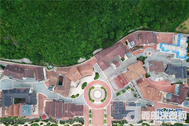 5月22日無(wú)人機(jī)航拍的北斗灣VR小鎮(zhèn)。小鎮(zhèn)內(nèi)有VR產(chǎn)業(yè)館、應(yīng)用館、科教館、體驗(yàn)館、創(chuàng)客空間和內(nèi)容交換空間等。新華社記者歐東衢攝