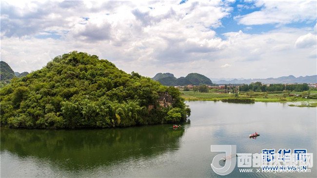 這是5月26日無(wú)人機(jī)拍攝的普者黑國(guó)家濕地公園一景。
