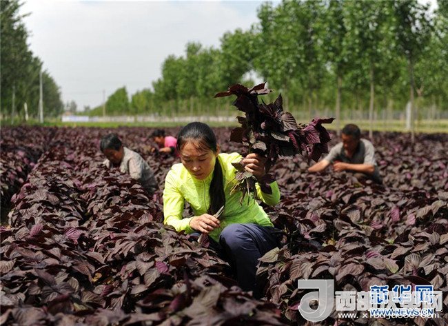 河北省吳橋縣曹洼鄉(xiāng)上村馬村農民收獲中藥材紫蘇(5月26日攝)。