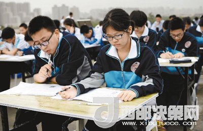 27日,來自西安各區(qū)縣的中學生在西安大明宮含元殿遺址進行筆試答題。