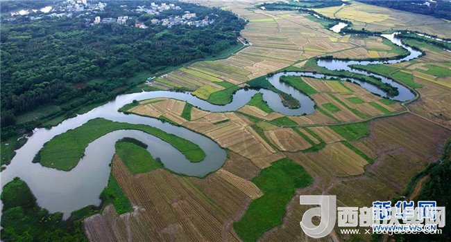 空中俯瞰??谑协偵絽^(qū)曲溪濕地(5月30日無人機(jī)拍攝)。