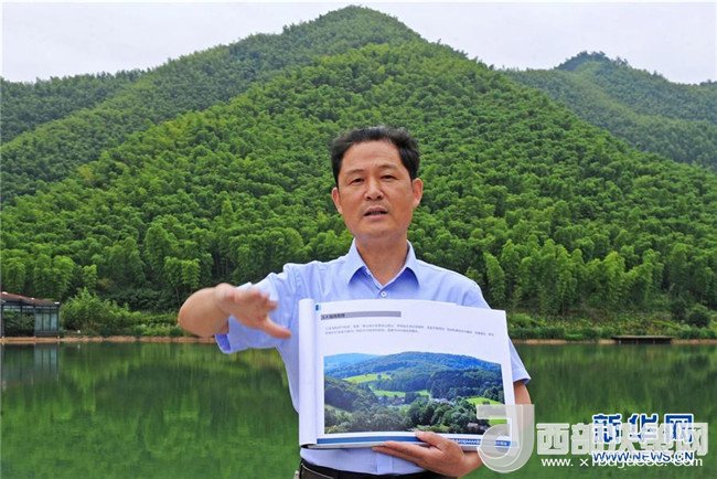 6月2日,安吉縣余村黨支部書記潘文革在講述余村創(chuàng)建國家5A級旅游景區(qū)規(guī)劃。新華社記者 譚進 攝