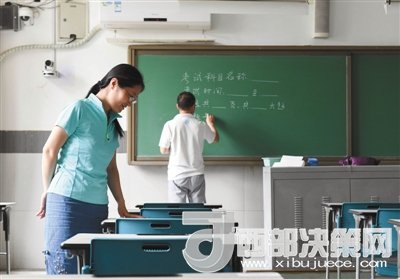 北京101中學是海淀區(qū)考場最多的一個考點,共有文科考場10個、理科考場20個、兩間備用考場。各位監(jiān)考老師在結(jié)束上午的考前培訓后來到了各自負責的考場,對布置情況進行最后的檢查。