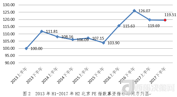 2017年下半年北京PE指數(shù)為120.25,環(huán)比增長1.18%,同比下降3.03%。從指數(shù)走勢看,2017年下半年北京PE指數(shù)較上半年穩(wěn)步回升,仍處于高位。