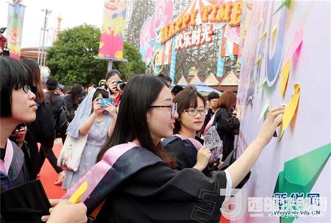 當(dāng)日,來(lái)自上海10余所高校的近80名應(yīng)屆大學(xué)本科畢業(yè)生來(lái)到上海歡樂(lè)谷,參加在這里舉行的過(guò)山車(chē)畢業(yè)禮活動(dòng)。