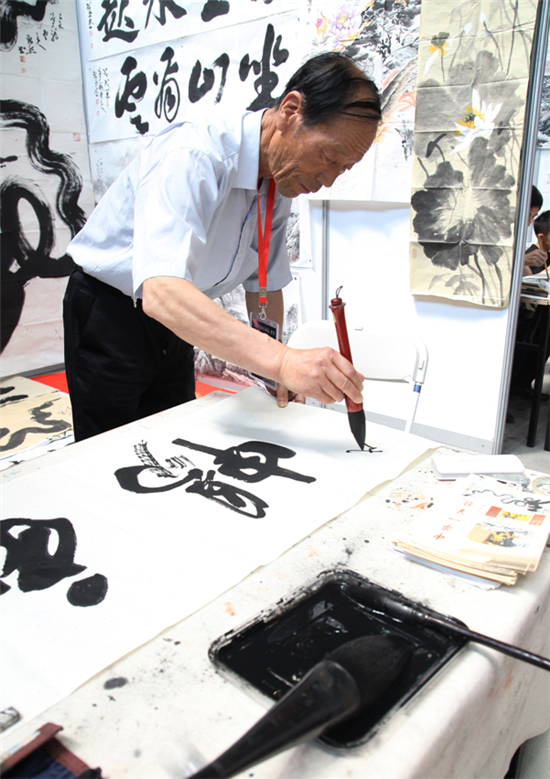 石博會(huì)邀請(qǐng)到來(lái)自北京、天津、河南、江蘇、甘肅、沈陽(yáng)及新疆等地的并在全國(guó)享負(fù)盛名的近80位書畫大師現(xiàn)場(chǎng)揮墨。其中有人物畫、花鳥畫(走獸)、山水畫、篆,隸,行,楷,草書法等作品一一呈現(xiàn)。為社會(huì)各界鐘情于傳統(tǒng)書畫藝術(shù)的人士提供與大師近距離接觸的機(jī)會(huì),讓到場(chǎng)的各位書畫愛(ài)好者大飽眼福,眾多大師的作品給人留下深刻的印象