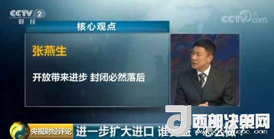 中國國際經(jīng)濟交流中心首席研究員 張燕生:習(xí)近平總書記在十九大報告中說過一句話,叫做開放帶來進步,封閉必然落后,這句話是我們中華民族過去幾千年,刻骨銘心的一個集體記憶或者教訓(xùn)。我們問自己一句,為什么近現(xiàn)代我們會錯過現(xiàn)代化、工業(yè)化這班車?很大程度跟閉關(guān)鎖國相關(guān),因此,我們現(xiàn)在主動擴大進口,是為了開放,反對貿(mào)易保護主義。
