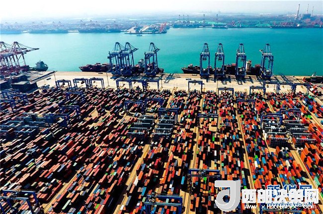 7月16日,江蘇連云港港口碼頭一片繁忙景象。新華社發(fā)(耿玉和攝)