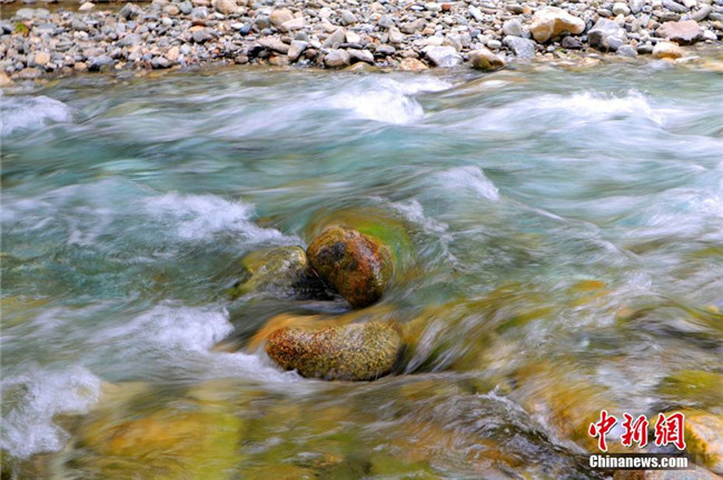 盛夏時節(jié),有著天山“幽谷”之稱的新疆和靜縣克爾古提,呈現(xiàn)出一副“冰火”兩重天景象。谷里氣溫涼爽,谷外高溫炙人,山道盤繞危崖,谷底芳華濃郁,溝谷亂石臥灘、清流穿碧,水畔古榆蒼茫,充滿了原始而又神秘的美,成為眾多游客選擇避暑的好地方??藸柟盘嵛挥谛陆挽o縣城東北天山南麓60多公里的山地峽谷,海拔1500至3000米,是國家重點(diǎn)公益林區(qū),屬于封閉狀天山水源涵養(yǎng)林區(qū)。王陸斌 攝