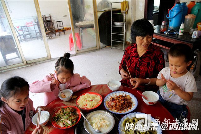 陳遠(yuǎn)太的老伴去山上干活去了,中午回不了家吃飯,陳遠(yuǎn)太便招呼孫女、孫子吃中午飯,小家伙們?nèi)偷贸院?,不能讓他們餓著。孩子的父母都不在家,做奶奶的更心疼孩子。