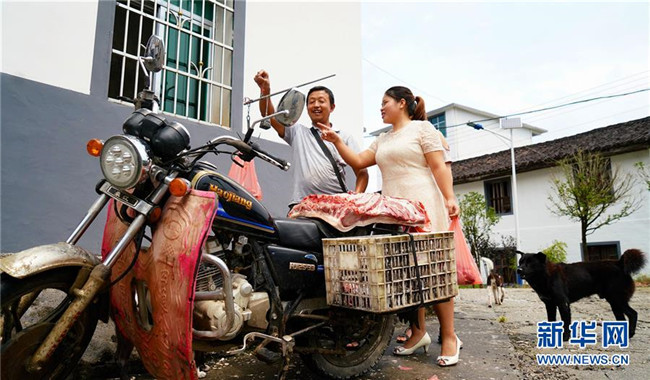 9月4日,陳春英送幾名學(xué)生回家。 新華社記者段卓力 攝
