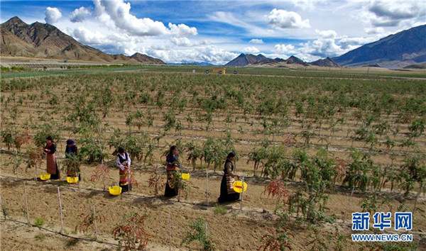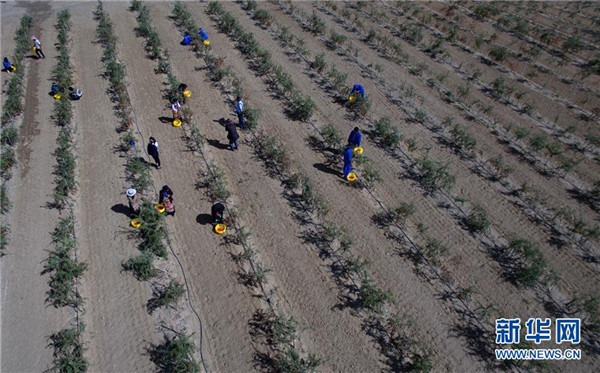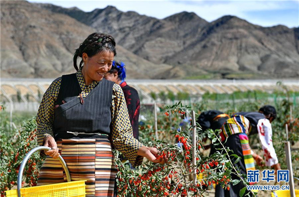 近日,西藏白朗縣萬(wàn)畝枸杞生態(tài)觀光產(chǎn)業(yè)園進(jìn)入采摘期。兩年多來(lái),經(jīng)過當(dāng)?shù)卣推髽I(yè)的共同努力,將原有的沙荒地進(jìn)行改造,成功栽培7000余畝枸杞目前已果實(shí)累累。 新華社記者 張汝鋒 攝
