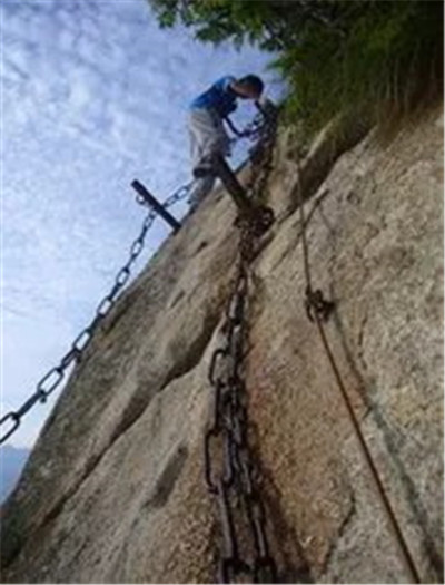 具有700多年歷史的長(zhǎng)空棧道,在華山南峰東側(cè)山腰的萬(wàn)仞絕壁上鑿出來(lái)的幾個(gè)踏腳之處,鑲嵌石釘搭木椽搭建了一個(gè)百余米懸空的棧道,讓人望而卻步,如果你有恐高癥,僅僅看一眼都會(huì)讓你驚恐萬(wàn)分。2013年,著名旅游網(wǎng)站“Smarter Travel”盤(pán)點(diǎn)全球最恐怖懸崖步道,將華山長(zhǎng)空棧道列為全球十大最恐怖的懸崖步道之一。