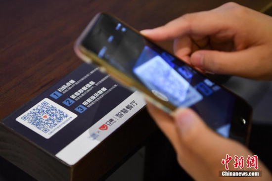9月5日,顧客通過(guò)掃描店家二維碼實(shí)現(xiàn)點(diǎn)餐、取餐、結(jié)賬。當(dāng)日,云南首家智慧餐廳在昆明開(kāi)業(yè),消費(fèi)者到店前,便可以使用口碑App或支付寶提前點(diǎn)好美食,預(yù)約時(shí)間然后自取,也可以到店后直接用手機(jī)點(diǎn)單,等收到取餐碼后,從取餐柜中拿出菜品,自助完成就餐全流程。中新社記者 劉冉陽(yáng) 攝