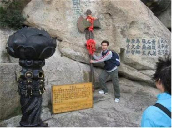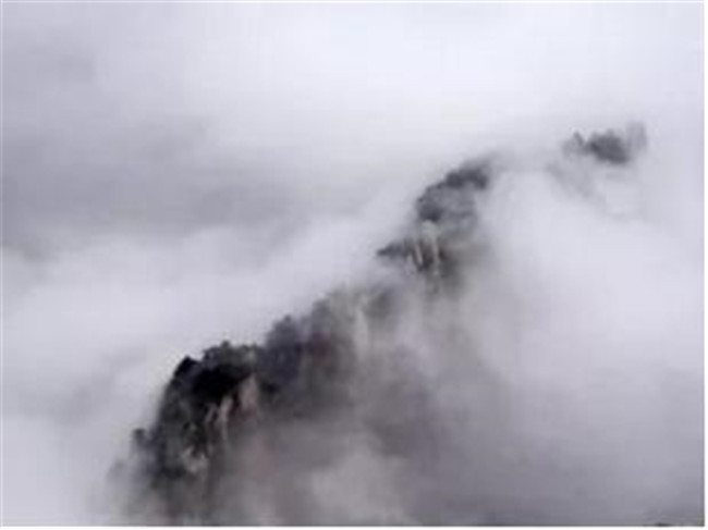 登南峰絕頂,頓感天近咫尺,星斗可摘,舉目環(huán)視,但見群山起伏,蒼蒼莽莽,為華山之最高峰,憑欄而望,白霧茫茫,不知深淺,風(fēng)起云海翻騰,漸露山頂,好是奇美!