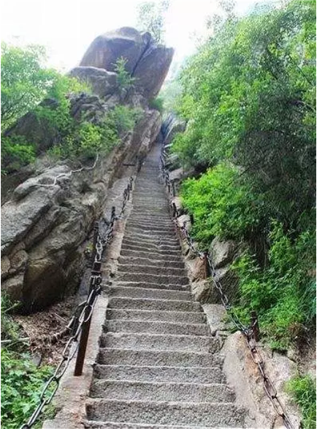 在爬上千尺幢以后,每個(gè)人除了大口的喘氣,就是站在那方平臺(tái)上極目遠(yuǎn)眺。這時(shí),看到的是連綿的山峰和山谷里曾經(jīng)走過的彎彎曲曲的山路,心神便會(huì)為之一振,豪情頓生滿懷。濕透了的衣衫,大汗淋漓的膀子,紅光滿面的臉龐,也許還有酸疼的腰和腿,加上從未有過的心靈的放飛,雖然感覺身體有些困乏,但那是一種極樂無比的體驗(yàn)。