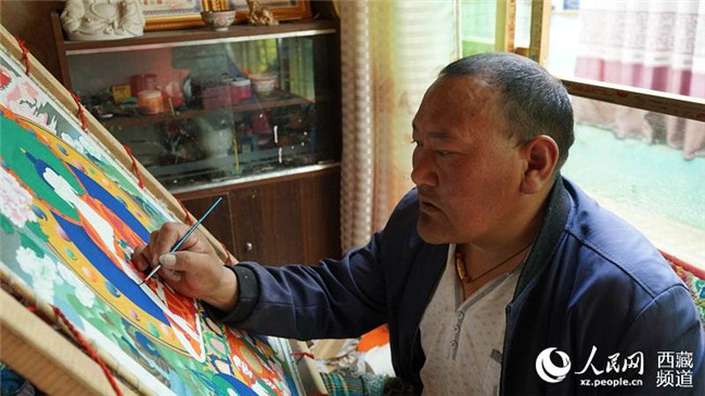 在薩迦縣城寶鋼中路上,民族手工業(yè)合作社店鋪里,45歲的邊巴正在小心擺弄著墻上的唐卡。邊巴說:“咱們薩迦民族手工業(yè)歷史悠久,比如薩迦唐卡和銀器都有千年歷史,泥塑面具也有900多年歷史,希望通過合作社形式讓手工業(yè)能規(guī)模化經(jīng)營,解決一些貧困戶就業(yè)。”(記者鄧建勝 瓊達卓嘎 )