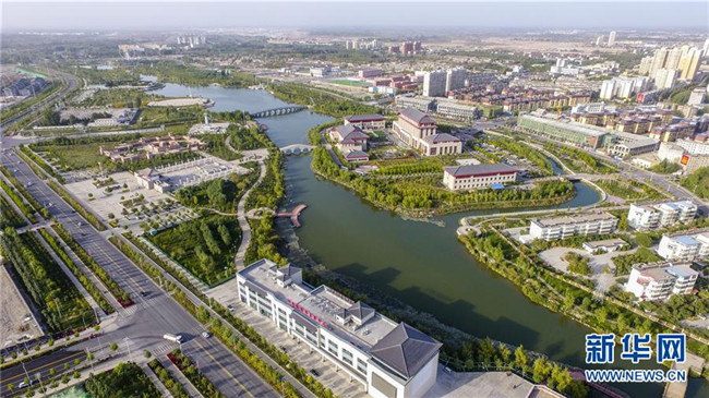 這是在新疆阿克蘇地區(qū)阿克蘇市拍攝的多浪河二期治理工程及其沿岸景觀(9月21日無人機拍攝)。新華社記者 胡虎虎 攝