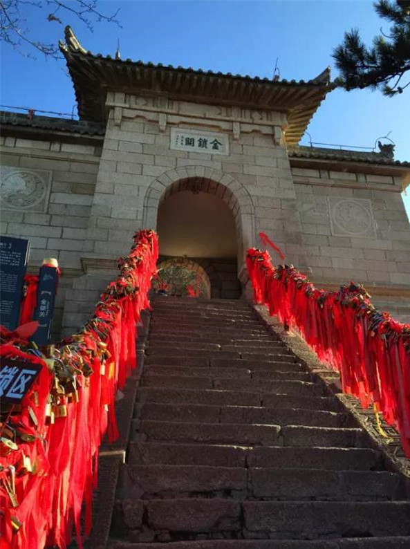 駐足在紀(jì)念亭的臺(tái)階上,聽(tīng)游客談?wù)撝侨∪A山的英勇故事。經(jīng)過(guò)擦耳崖,注視著你在小心翼翼的行走的模樣。也經(jīng)過(guò)險(xiǎn)峻異常的蒼龍嶺,好想大聲吶喊幾聲,聽(tīng)聽(tīng)天地間的回響。