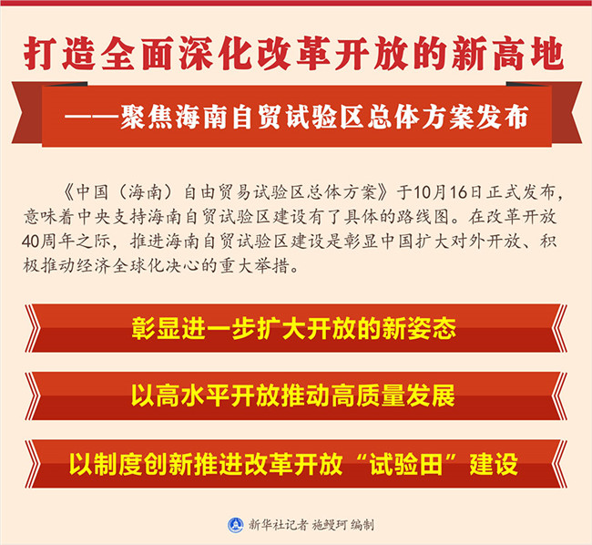 原標(biāo)題:打造全面深化改革開(kāi)放的新高地——聚焦海南自貿(mào)試驗(yàn)區(qū)總體方案發(fā)布