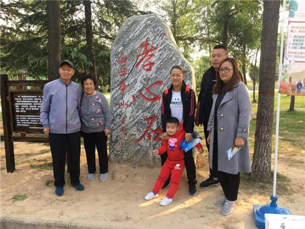 在節(jié)日的氛圍里,游客熱情高漲,爭先恐后地與“孝心石”合影留念,以此表達(dá)自己對父母的親切祝福。