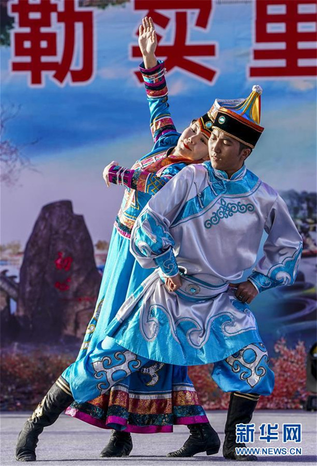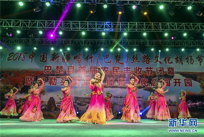 10月22日,演員在果勒買里村為游客和村民表演節(jié)目。 新疆巴楚縣阿納庫(kù)勒鄉(xiāng)果勒買里村緊鄰巴楚縣城,區(qū)位優(yōu)勢(shì)明顯。近年來,新疆維吾爾自治區(qū)體育局“訪民情”“惠民生”“聚民心”駐村工作隊(duì)幫助村里完善基礎(chǔ)設(shè)施和改善村容村貌,借助節(jié)慶活動(dòng)大力發(fā)展鄉(xiāng)村旅游,吸引周邊及外地游客前來觀光休閑,既豐富了村民的文化生活,又為村民增收致富拓寬了門路。 新華社記者 胡虎虎 攝