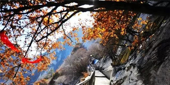 華山的紅葉是一種渾然天成、不加修飾的美。云淡風(fēng)輕、紅葉晚霞,郎才女貌,天然絕配。華山紅葉依托青山白云,無(wú)疑中便蘊(yùn)含大自然神秘的面紗,也吸引名人志士的不懈探索與尋覓,天然造成鐘靈毓秀,是珍稀植物的棲息隱居良地。