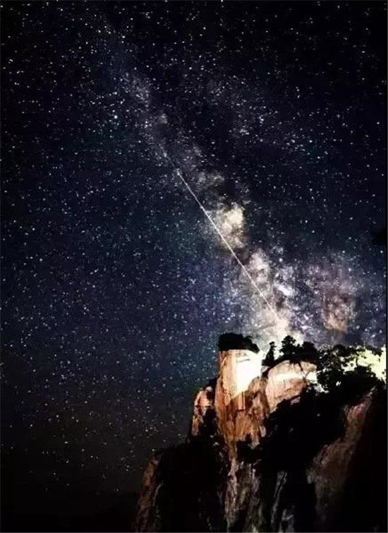 繁眼的星光,滿山的燈光,將華山映襯得一派柔和,這里的夜屏蔽了城市的喧囂與繁華,有著不屬于城市的寧?kù)o與美麗。