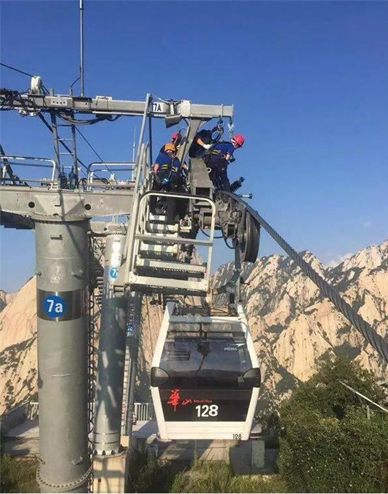 而在這一幅幅令人驚嘆的畫面背后,正是一群索道維修工默默地保障游客安全。是他們用忠誠與汗水護(hù)衛(wèi)著這條天路,讓游客能夠從另一個角度欣賞華山的偉岸,體會“一覽眾山小”的醉美情懷。