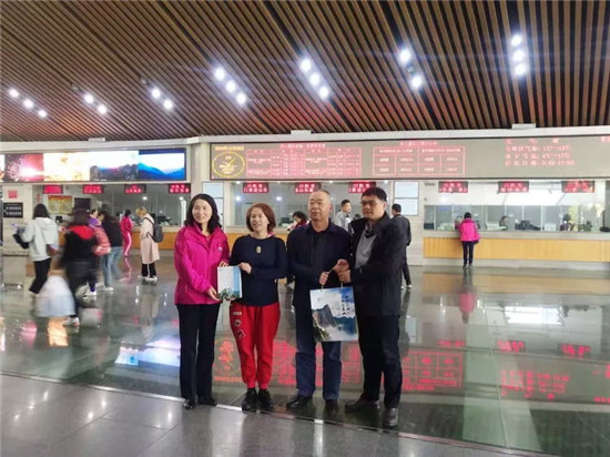 為此,票務(wù)中心根據(jù)集團(tuán)公司領(lǐng)導(dǎo)安排,組織了向第3000001位幸運游客代表劉姓游客贈送華山旅游紀(jì)念品的活動,活動現(xiàn)場票務(wù)中心主任李泉向該名游客贈送了代表華山四季美景的集郵冊一套和《華山楹聯(lián)》書籍一本,劉姓游客非常高興,表示華山景美,人更美,下次還會帶親朋好友游覽。