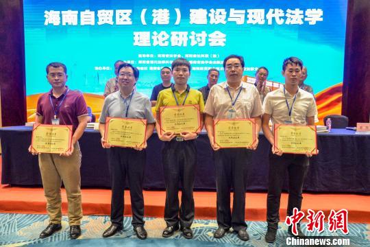 圖為海南省法學會向海南自貿(mào)區(qū)(港)法治建設優(yōu)秀論文撰寫者頒獎。 洪堅鵬 攝