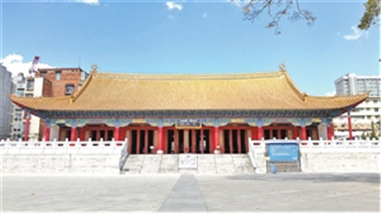 經(jīng)過一年半的施工,昆明文廟恢復(fù)性修建項目一期工程于去年7月完工。此次修復(fù),昆明市規(guī)劃局及相關(guān)部門以歷史文獻(xiàn)和老照片為主要修復(fù)依據(jù),并結(jié)合明清時期地方城市廟學(xué)建筑的基本規(guī)制,以及現(xiàn)有建筑遺存,對清代云南府學(xué)進(jìn)行復(fù)原研究設(shè)計。提出修復(fù)設(shè)計思路將保留云南府學(xué)中路的欞星門與泮池,恢復(fù)中軸線上的大成門、大成殿與啟圣祠,以及相關(guān)配殿,如祭器庫、樂器庫,東西廡等。并對府學(xué)的東路改造,保留桂香樓與明倫堂兩座建筑,穿插設(shè)置園林小品建筑,形成數(shù)座各有特點(diǎn)的小型古典園林,增加建筑群的文化與休閑氛圍,并將東路與西路建筑結(jié)合成為有機(jī)整體。在重新開放的文廟里,市民能發(fā)現(xiàn)從地下挖出的柱礎(chǔ)基石支撐起大成殿新建立柱;能從在地下沉睡了上百年的石碑上讀到更多關(guān)于文廟的歷史。至此,昆明祭孔、尊孔,傳承弘揚(yáng)優(yōu)秀傳統(tǒng)文化再添一處重要場所。