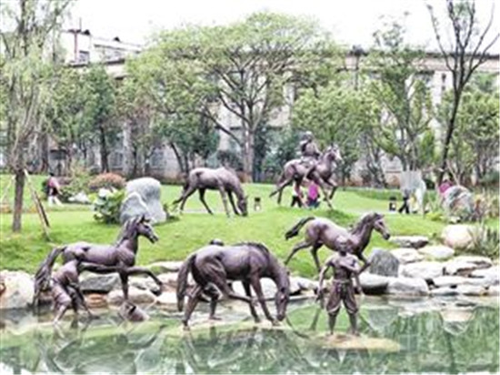 今年6月30日,《翠湖周邊歷史文化片區(qū)整治提升規(guī)劃》中的翠湖洗馬河水系恢復(fù)及帶狀公園對外開放,消失許久的“柳營洗馬”景觀重現(xiàn)翠湖邊,蜿蜒的河道從兩岸柳蔭下穿過,無論是具有明清歷史特色的兵馬奔騰的青銅雕塑,還是古樸典雅的活字印刷,抑或是獨(dú)特的噴泉造型,無不重現(xiàn)了600多年前沐英“柳營春試馬、虎帳夜談兵”的歷史文化,吸引著過往市民和游客,被稱為“昆明之眼”的翠湖,因其更具亮色。