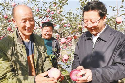 近年來,延安蘋果產(chǎn)業(yè)不斷壯大。在寶塔區(qū)廟溝村,薛占海腳一踏進(jìn)果農(nóng)朱懷明的蘋果園就問:“老朱,你今年蘋果賣了多少錢?”