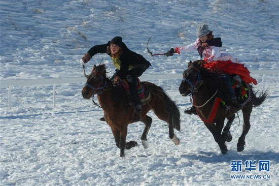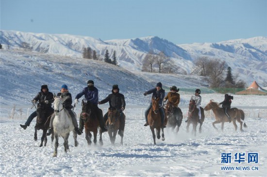 11月17日,當(dāng)?shù)鼐用裨谘┑厣线M(jìn)行賽馬比賽。當(dāng)日,新疆那拉提冰雪旅游文化節(jié)在新疆新源縣那拉提旅游風(fēng)景區(qū)開(kāi)幕。此次冰雪節(jié)將舉辦滑雪運(yùn)動(dòng)會(huì)、雪地越野跑、雪地足球、雪地摔跤等活動(dòng),為游客帶來(lái)冰雪之樂(lè)。 新華社發(fā)(丁磊 攝)