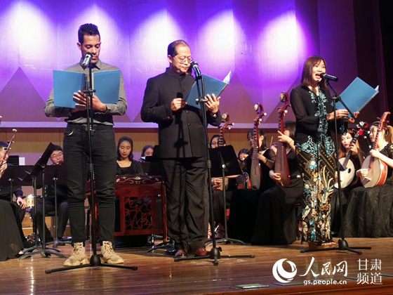 據(jù)介紹,此次吟唱會采用原創(chuàng)的詩作、樂曲、書法作品。節(jié)目由鄭欣淼、侯雁北、張俊宗等數(shù)十位學者、書法家、音樂家共同參與創(chuàng)作表演,另有敦煌樂舞團傾情加盟。一批精彩的節(jié)目,如敦煌曲子詞《開于闐》、國家非遺蘭州鼓子《漁樵問答》、琵琶樂曲《夢回古道》以及詩吟唱《華夏玉帛信仰》等逐一登場,精彩表演贏得了觀眾陣陣掌聲。