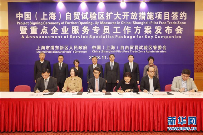 11月19日,上海自貿(mào)區(qū)擴(kuò)大開放措施項目簽約會舉行。 在商務(wù)部和國家發(fā)展改革委的指導(dǎo)下,2013年9月上海自貿(mào)區(qū)發(fā)布中國首份外商投資準(zhǔn)入負(fù)面清單,其中列明了190條外商投資特別管理措施。2018年,最新版的負(fù)面清單管理措施已減少至45條。 上海市商務(wù)委副主任申衛(wèi)華說,根據(jù)相關(guān)管理辦法,政府對負(fù)面清單以外的外商投資企業(yè)和項目實行備案管理,外商投資企業(yè)備案的申報、審核、結(jié)果告知全程網(wǎng)上辦理,辦理時間從8個工作日減少到1個工作日。 統(tǒng)計顯示,截至2018年6月,上海自貿(mào)區(qū)掛牌后新設(shè)外商投資企業(yè)8696個,吸引合同外資1102.4億美元,實到外資221.33億美元,98%以上是通過備案方式設(shè)立。 新華社記者方喆攝