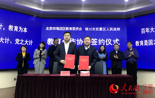 11月28日,京銀教育合作簽約儀式在銀川中關(guān)村創(chuàng)新創(chuàng)業(yè)中心舉行,北京市海淀區(qū)教委和銀川市西夏區(qū)人民政府簽署了教育合作協(xié)議;北京市中關(guān)村中學(xué)與銀川市中關(guān)村中學(xué)簽署了結(jié)對(duì)共建協(xié)議。