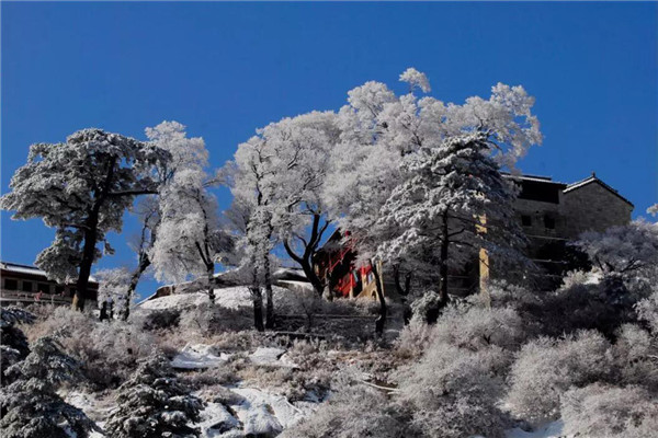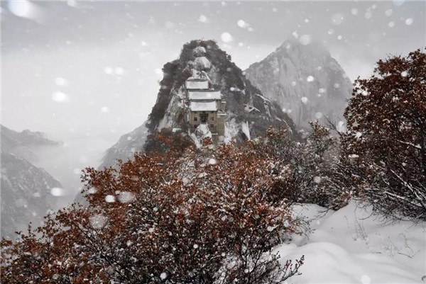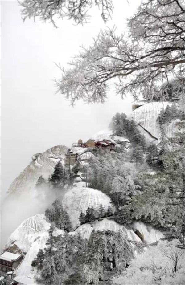 塵世的喧器與愁憂都讓雪裹去了,唯獨給記憶留下了一片雪一樣潔凈的空白,揮不去華山雪中的松樹留在我腦海中的形象。那是千百年來情澆情鑄的精靈。