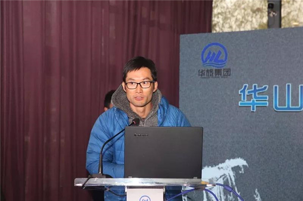攀巖名將、洲際定線員邱洪樹介紹華山巖壁考察情況