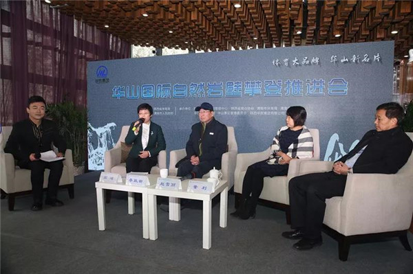 會(huì)上,渭南市政府副秘書長李曉京致歡迎詞,集團(tuán)副總經(jīng)理趙江鋒對華山及周邊旅游資源進(jìn)行了介紹,攀巖名將、洲際定線員邱洪樹介紹了華山巖壁考察情況,來自英國的攀巖運(yùn)動(dòng)員Eli Hardie Howes向與會(huì)人員分享了華山巖壁攀登的感受。