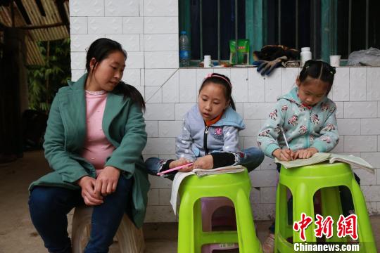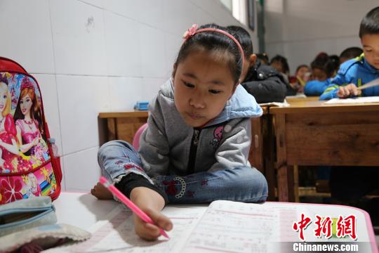放學(xué)回家,游成雪用腳寫作業(yè)。陳本強 攝