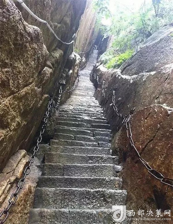 自古攀登華山僅南北一條約15公里的山道,稱為自古華山一條路,華山腳下的玉泉院是登山的起點(diǎn)。