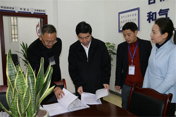 在張壩司法所,劉志誠(chéng)察看了社區(qū)矯正宣告室、人民調(diào)解室、法律援助工作站,仔細(xì)翻閱相關(guān)資料,關(guān)切詢問(wèn)工作人員司法所人民調(diào)解、法律援助等業(yè)務(wù)工作情況及對(duì)司法行政工作意見(jiàn)建議。走進(jìn)龍馬潭區(qū)誠(chéng)達(dá)公證處,映入眼簾的標(biāo)識(shí)標(biāo)牌讓劉志誠(chéng)對(duì)該處的黨建引領(lǐng)和文化建設(shè)表示滿意,他親切地與公證員交流互動(dòng),了解公證處黨建促發(fā)展、公證參與司法輔助、“最多跑一次”、等工作情況。劉志誠(chéng)指出,公證服務(wù)是黨委政府為民服務(wù)的形象和代表,要把人民群眾滿不滿意作為檢驗(yàn)公證工作成效的標(biāo)準(zhǔn),全心全意為群眾做好法律服務(wù)。在自貿(mào)區(qū)在建瀘州市公共法律服務(wù)中心,劉志誠(chéng)指出,公共法律服務(wù)中心是服務(wù)群眾的窗口,在設(shè)計(jì)規(guī)劃中要拓寬思路,整合法律服務(wù)功能,從便民利民出發(fā),從群眾的需要做起,將公共法律服務(wù)中心建成群眾滿意、企業(yè)滿意、黨委政府滿意的標(biāo)準(zhǔn)化服務(wù)平臺(tái)。