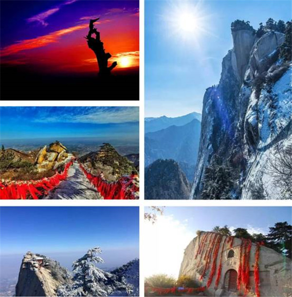 石蓮鋪地,華岳擎天。勢(shì)行斧刃,剛插云環(huán)。北臨黃渭,東鎖潼關(guān)。南依秦嶺,西望長(zhǎng)安。華山等你來,一道呼吸新鮮空氣,遠(yuǎn)離霧霾。