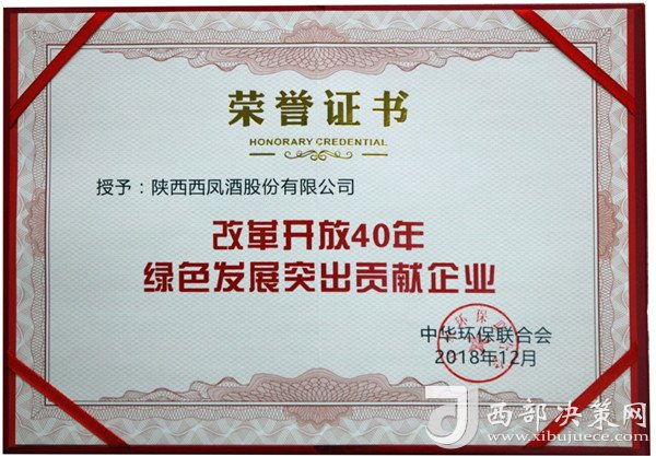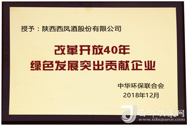 近日,在中華環(huán)保聯(lián)合會組織的“紀念改革開放40年中國企業(yè)綠色發(fā)展成就主題活動”中,陜西西鳳股份公司因在綠色發(fā)展、生態(tài)文明、環(huán)境保護、節(jié)能減排等方面的突出成績,榮獲改革開放40年“綠色發(fā)展突出貢獻企業(yè)”殊榮。標志著該公司在實施綠色發(fā)展戰(zhàn)略、生產(chǎn)綠色產(chǎn)品、使用綠色技術(shù)等方面的卓越成果得到國家環(huán)保部門的充分肯定,達到了企業(yè)經(jīng)濟效益、社會效益、環(huán)境保護效益的有機統(tǒng)一。