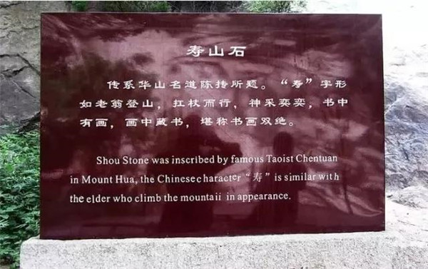 “壽山”二字在華山峪進(jìn)山一公里處山崖上,為道祖陳摶所題書(shū)。