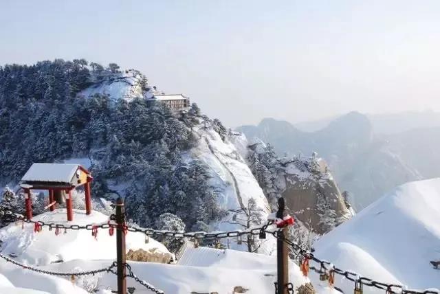 銀裝素裹的華山格外妖嬈,難得一見(jiàn)的華山雪景——美麗的霧凇給樹(shù)木、巖石、屋舍都披上一層晶瑩的薄衣,尤其在大雪覆蓋后,山景變成一幅曼妙的白色圖畫(huà),峰上的樹(shù)木和古藤被透明的冰層包裹,極富魅力。