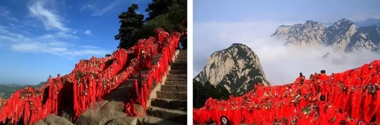 在金鎖關(guān)鎖上一把愛(ài)情鎖,讓一把感情鎖和華山一同到地老天荒,成為一個(gè)“山無(wú)陵,天地絕,乃敢與君絕”的千古情愛(ài)神話。